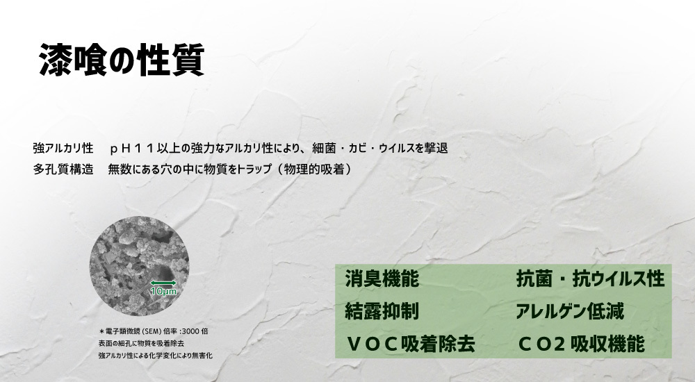 漆喰の小さな穴に水分を吸収・放出で湿度調整